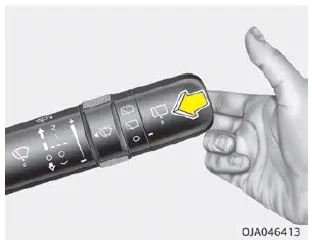 Ziehen Sie den Wischerhebel in der Schalterstellung OFF (O) leicht nach hinten, um Waschwasser auf die Windschutzscheibe zu sprühen und die Scheibenwischer 1-3 Mal wischen zu lassen.