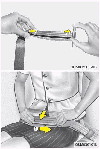 Wenn sich der Sicherheitsgurt nicht aus der Gurtrolle ziehen lässt, ziehen Sie den Gurt kräftig heraus und lassen Sie ihn wieder los. Danach können Sie den Gurt leicht von der Gurtrolle ziehen.