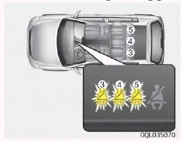 Wenn ein hinterer Sicherheitsgurt bei einer Geschwindigkeit von über 20 km/h abgelegt wird, beginnt die entsprechende Gurtwarnleuchte 35 Sekunden lang zu blinken, gleichzeitig ertönt für dieselbe Zeit ein Warnsignal.