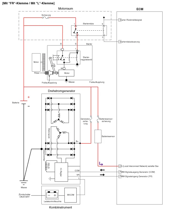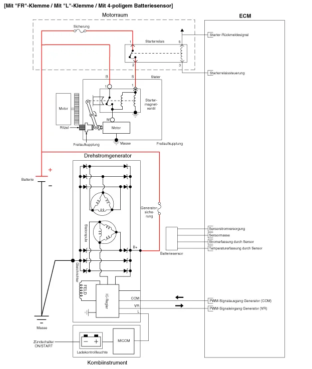 Die Ladespannung dieses Generators wird durch das System zur Messung der Batteriespannung