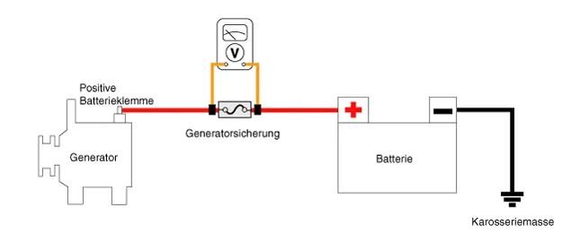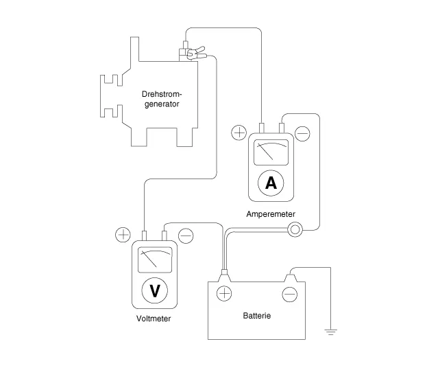 Amperemeter in Reihe zwischen Batterie-Klemme (-) und dem Massekabel