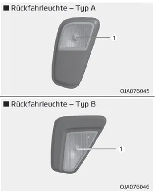 Wenn die Rückfahrleuchte (1) nicht funktioniert, lassen Sie das Fahrzeug von einer Fachwerkstatt überprüfen. Kia empfiehlt den Besuch eines Kia- Händlers/Servicepartners.