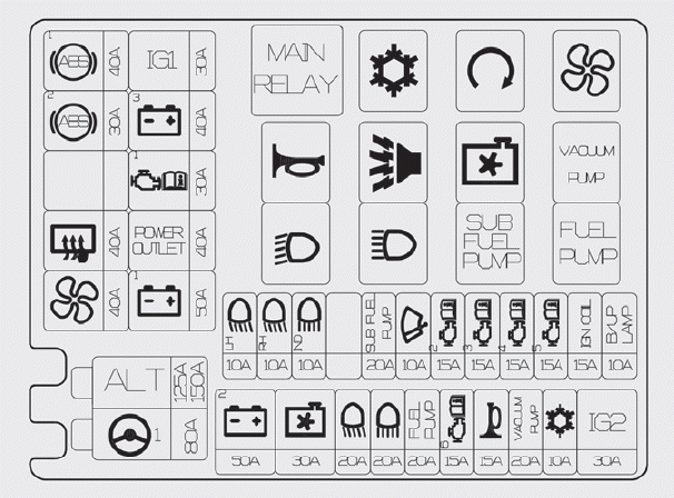 Sicherungskasten im Motorraum (Kappa 1,0L/1,2L MPI Benzinmotor)