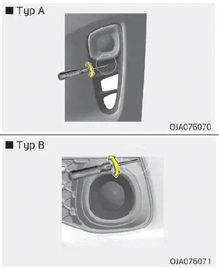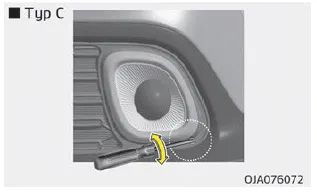 Drehen Sie zur Ausrichtung des vorderen Nebelscheinwerfers nach oben und unten den Schraubenzieher nach links oder rechts.