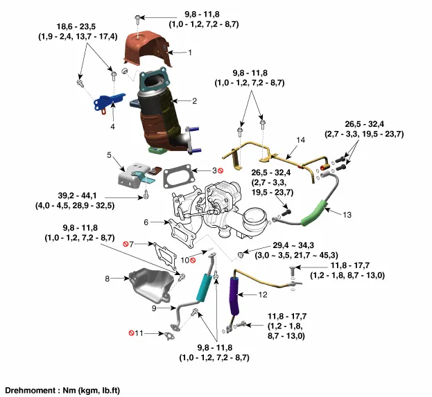 Montage von Turbolader und Auspuffanschluss (oder der Nachbehandlung) überprüfen.