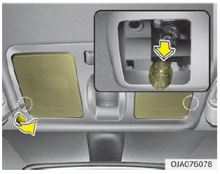 Wenn die Schminkspiegelleuchte (LED) (1) nicht funktioniert, lassen Sie das Fahrzeug von einer Fachwerkstatt überprüfen. Kia empfiehlt den Besuch eines Kia-Händlers/Servicepartners.