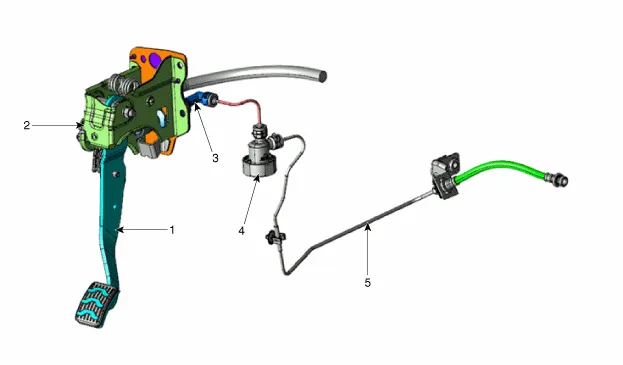 Bauteile und bauteile-Übersicht BAUTEILE-ÜBERSICHT [Kappa 1,0 T-GDI] 1. Kupplungspedal 2. Zündschloss- und Kupplungsschalter 3.