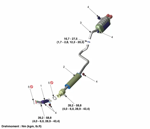 | 1. Vorschalldämpfer 2. Katalysator und Mittelschalldämpfer 3. Hinterer Schalldämpfer |