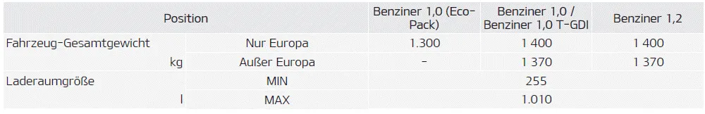 Nur Europa Außer Europa HINWEIS Wir empfehlen, dass Sie beim Reifenwechsel die gleichen Reifen verwenden, die ursprünglich mit dem Fahrzeug geliefert wurden.