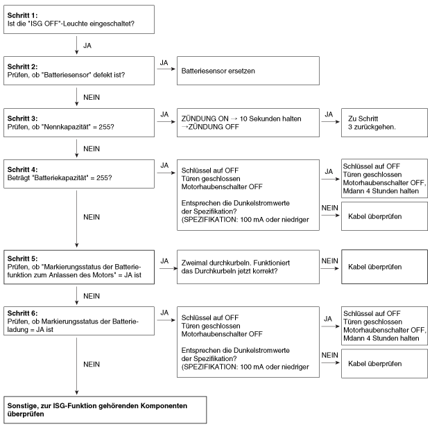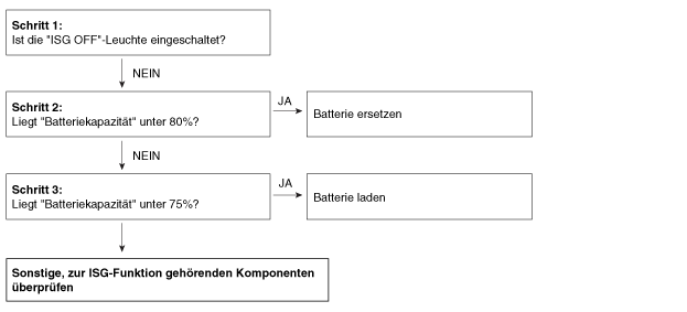 Sollte die ISG-Funktion trotz des Fehlercodes nicht funktionieren, muss das System wie folgt überprüft werden.