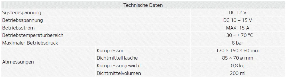 ❈ Dichtmittel und Ersatzteile können von einem autorisierten Fahrzeug- oder Reifenhändler