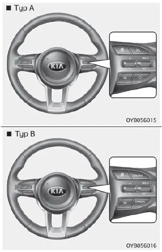 1. Drücken Sie die Taste /CRUISE am Lenkrad, um das System einzuschalten. Die Tempomat-Kontrollleuchte leuchtet auf. 2. Beschleunigen Sie bis auf die gewünschte Geschwindigkeit, die über 30 km/h liegen muss.