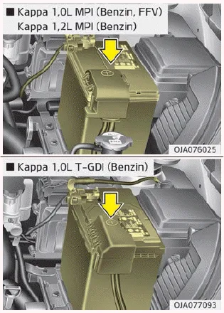 Die Batterie enthält Blei. Entsorgen Sie nach Gebrauch nicht im Hausmüll. Wenden Sie sich an eine Fachwerkstatt. Kia empfiehlt den Besuch eines Kia- Händlers/Servicepartners.