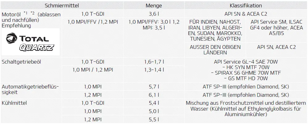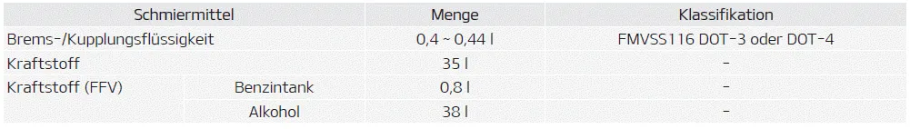 Diese Schmiermittel und Flüssigkeiten sind für den Einsatz in Ihrem Fahrzeug empfohlen.