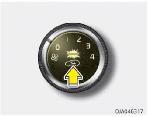 Das Gebläse kann nur bei eingeschalteter Zündung bedient werden. Mit diesem Drehknopf können Sie die Gebläsedrehzahl einstellen, um den aus den Luftdüsen strömenden Luftstrom zu regulieren.