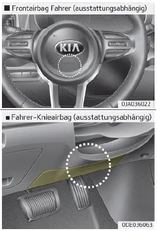 Kia Picanto (JA): Airbags – ergänzendes Rückhaltesystem / Fahrer- und Beifahrerairbag vorn (ausstattungsabhängig)