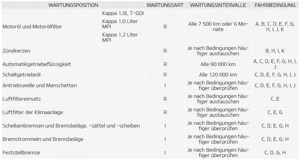 Motoröl und Ölfilter Motoröl und Motorölfilter müssen in den im Wartungsplan vorgeschriebenen Intervallen ersetzt werden. Wenn das Fahrzeug unter erschwerten Einsatzbedingungen genutzt wird, sind häufigere Öl- und Filterwechsel erforderlich.