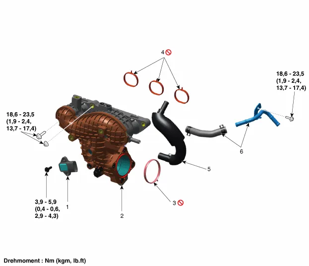(MAPS) 2. Saugrohr 3. Dichtung des Moduls für elektrische Drosselklappensteuerung (ETC) |