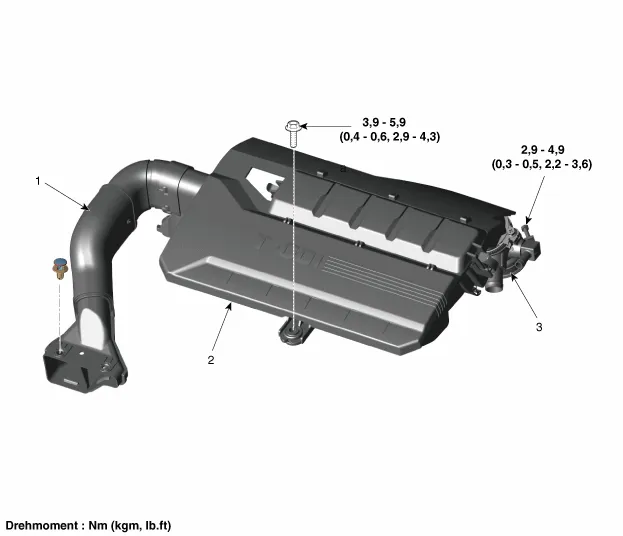 Bauteile und bauteile-Übersicht BAUTEILE-ÜBERSICHT 1. Absolutdrucksensor (MAPS) 2. Saugrohr 3. Dichtung des Moduls für elektrische Drosselklappensteuerung (ETC) 4.