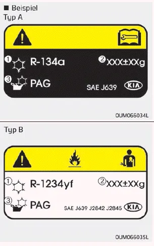 ❈ Die tatsächliche Kennzeichnung des Kältemittels der Klimaanlage in Ihrem Fahrzeug kann von dieser Abbildung abweichen.