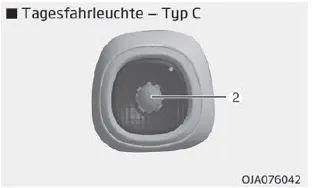 Wenn das Tagfahrlicht (2) nicht funktioniert, lassen Sie das Fahrzeug von einer Fachwerkstatt überprüfen. Kia empfiehlt den Besuch eines Kia-Händlers/ Servicepartners.