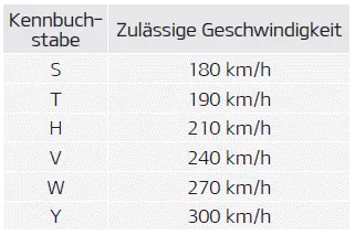 Reifenkennbuchstaben für die zulässige Höchstgeschwindigkeit