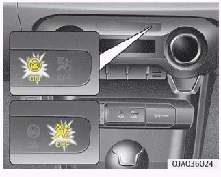 Der ON/OFF-Schalter für den Frontairbag kann auch mit einem schmalen stabilen Gegenstand gedreht werden. Überprüfen Sie stets den Status des EIN-/AUS-Schalters für den Frontairbag und die Kontrollleuchte des Beifahrerfrontairbags.