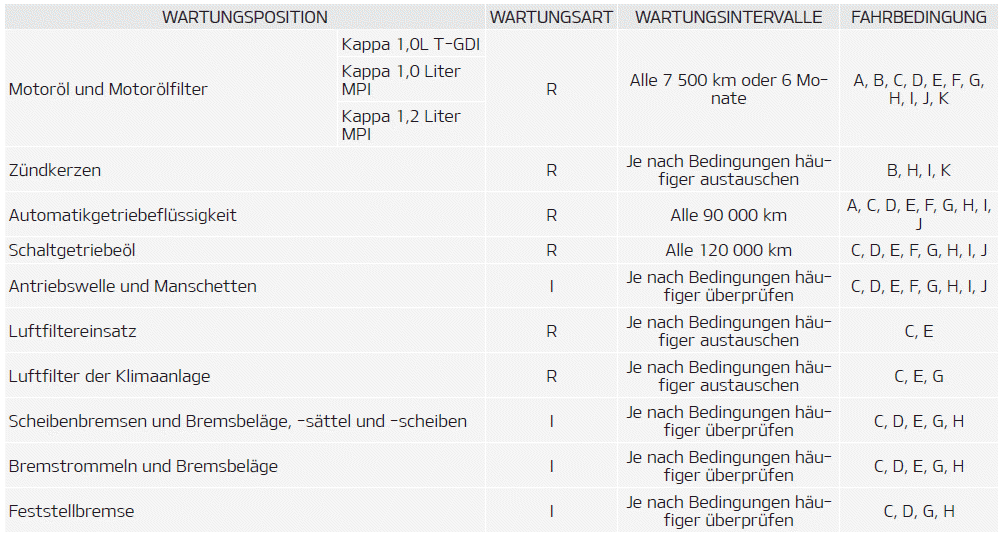Standard-Wartungsplan - Für Benzinmotoren [Nur Europa]